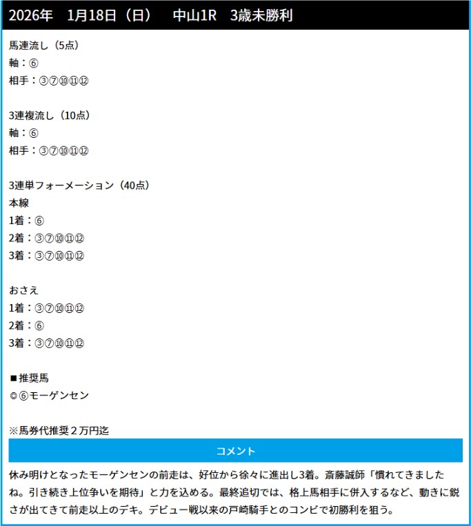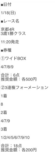 sEj5856さん1月17日(土)の無料予想2鞍提供2鞍的中