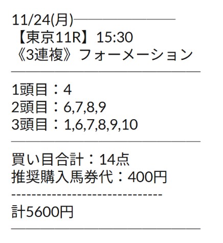 11月22日(土)3連休初日の京都2Rの無料予想で