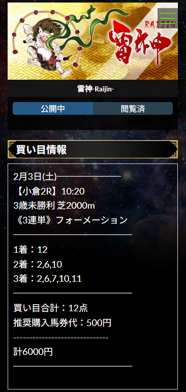 | 的中率 | 回収率 | 無料予想 | 有料予想 | 高配当 |