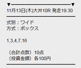 1日(月)大井10Rの無料予想でワイド3種完全的中!