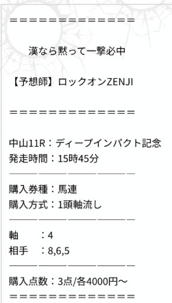 中山11Rの無料予想を三連複で提供してくれていたEFセレクト