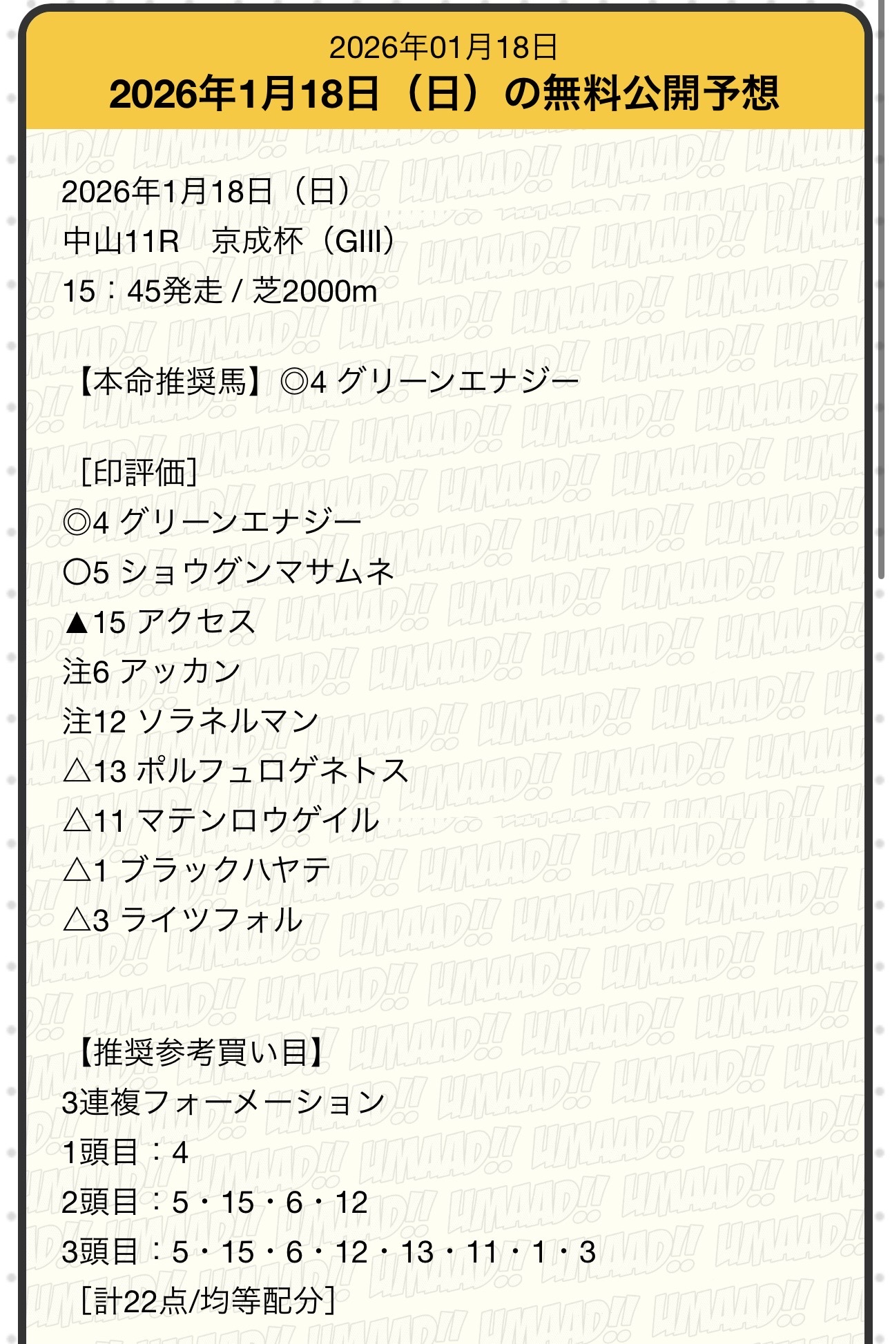 重賞を無料予想で的中でこの回収率素晴らしかったです!