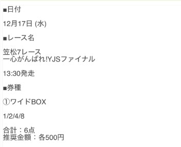 買い目点数も6点だったので馬券代を1点2000円で勝負