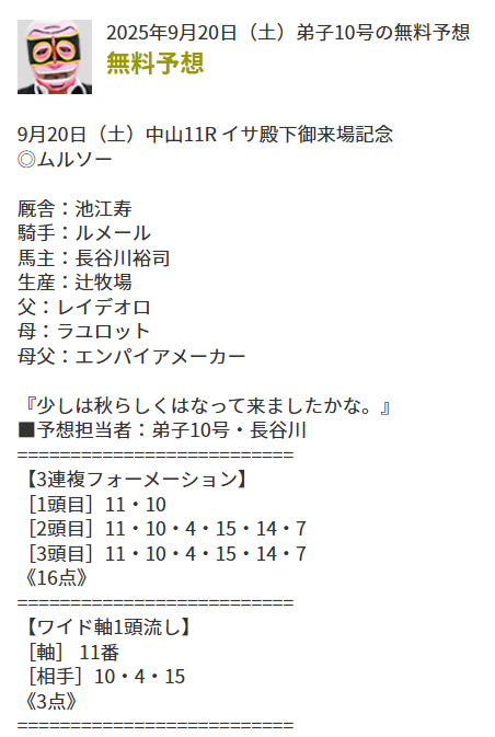 9月最初の無料予想的中でしたね!