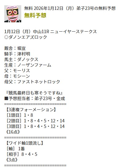 2026年も無料予想で順調に的中と貯金を殖やしています。